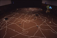 Variation 1 (2005) is 16-track audio-light installation using manipulated phonemes and light triggered by audio signal as a (linguistic) code for a composition that straddles sound art, sound poetry, music and free-form experimentation. The abstract narrative uses rhythm, colour and silence to suggest social anxiety without logical sensibility. Production support from the Saskatchewan Arts Board, paved Art + New Media (Saskatoon), The Banff Centre and the University of Regina-Department of Computer Science and Faculty of Fine Arts. Exhibited in North Bay (2005) and Calgary (2006). In Variation 2:(2006), the composition echoes the architectural structure of the International Phonetic Alphabet with twenty phonemic categories channeled to twenty outputs of sound. An additional four outlets use single phonemes, a real-time sound generator with variables of tempo and amplitude and speakers containing water. Sound triggers the vibration of the speaker; as the sound escalates, the water becomes increasingly agitated. As a meditation, the objectivity of linguistic structures and the physical properties of media intersect with the subjectivity of voice, rhythms and interpretation. Production support from the Canada Council for the Arts-Media Production. Completed and presented as a performance during a residency at Western Front, Vancouver (2006). PLAY