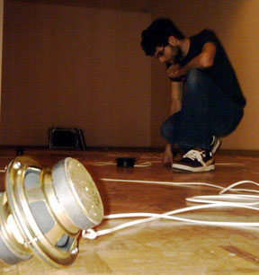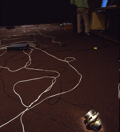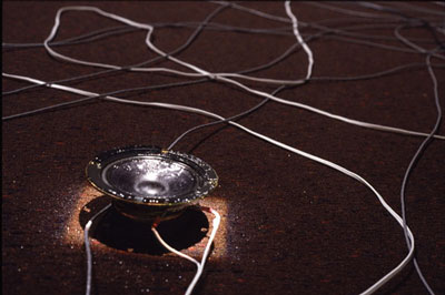 Variation 1 (2005) is 16-track audio-light installation using manipulated phonemes and light triggered by audio signal as a (linguistic) code for a composition that straddles sound art, sound poetry, music and free-form experimentation. The abstract narrative uses rhythm, colour and silence to suggest social anxiety without logical sensibility. Production support from the Saskatchewan Arts Board, paved Art + New Media (Saskatoon), The Banff Centre and the University of Regina-Department of Computer Science and Faculty of Fine Arts. Exhibited in North Bay (2005) and Calgary (2006). In Variation 2:(2006), the composition echoes the architectural structure of the International Phonetic Alphabet with twenty phonemic categories channeled to twenty outputs of sound. An additional four outlets use single phonemes, a real-time sound generator with variables of tempo and amplitude and speakers containing water. Sound triggers the vibration of the speaker; as the sound escalates, the water becomes increasingly agitated. As a meditation, the objectivity of linguistic structures and the physical properties of media intersect with the subjectivity of voice, rhythms and interpretation. Production support from the Canada Council for the Arts-Media Production. Completed and presented as a performance during a residency at Western Front, Vancouver (2006). PLAY